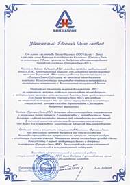 ![]() Отзыв от Банка «Нальчик» ООО о внедрении «ПрограмБанк.АБС» |