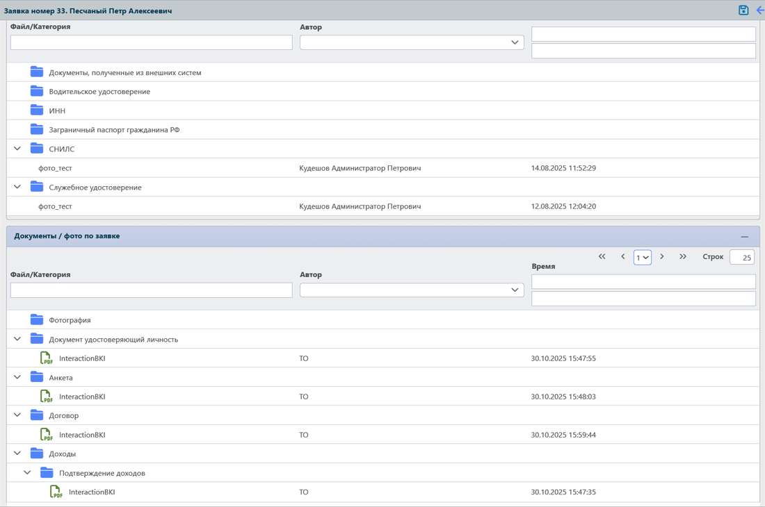 К заявке прикрепляются все необходимые документы, которые получены от заявителя, из внешних источников или из внутренних систем заказчика. К таким документам, например, относятся сканы бумажных документов, заключения служб заказчика, аудио и видеозаписи и др.